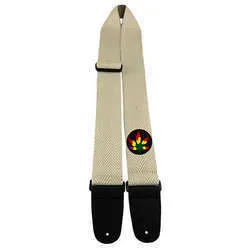 2" wide deluxe hemp guitar strap with non-leather ends. Jamaican Leaf sewn on patch. It is adjustable in length from 39" to 58"