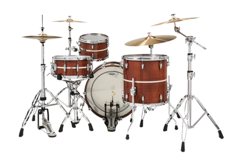 The new Renown Limited’s foundation is a 7 ply mahogany shell that’s finished in gloss lacquer and detailed with a Vintage Marine Pearl inlay. Longstanding features like traditional sizes, a direct-to-shell mount, die-cast hoops, and 30-degree bearing edges put the finishing touches on this celebratory kit.