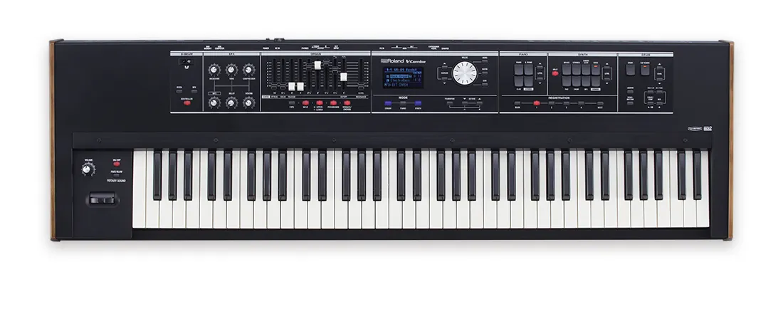 Piano is a cornerstone sound for live playing, and the VR-730 provides a wide selection for covering all musical styles. Many historic electric piano are on board, including a selection derived from the RD-2000. You can also spice up your EPs with vintage effects like phaser, tremolo, touch wah, and tape delay. The gorgeous acoustic grand piano features 88-note stereo multi-sampling, delivering pro-level tone that rivals Roland’s dedicated stage pianos. The VR-730’s easy-access compressor effect works great with the piano sounds, ensuring that your playing always cuts through when performing with loud bands and big ensembles.