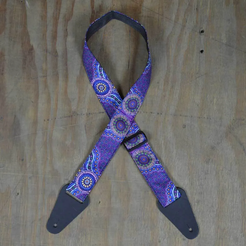 Aboriginal Art Guitar Strap – Purple Bush Onion