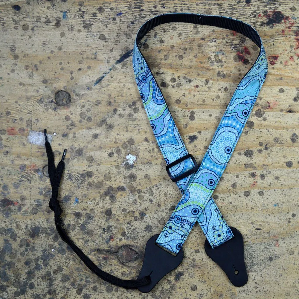 Aboriginal Art Rag Ukulele Strap – Yalke Wetlands Aqua