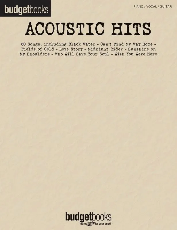 Get the most out of your money with this BudgetBooks collection of 60 hits: Black Water • Bridge over Troubled Water • Cat's in the Cradle • Crazy Love • Dance with Me • Falling Slowly •Hallelujah • I Need You • Learning to Fly • Love Story & bull; The Night They Drove Old Dixie Down • She Talks to Angels • Sunshine (Go Away Today) • What I Got • Who Will Save YourSoul • Wish You Were Here • and more.