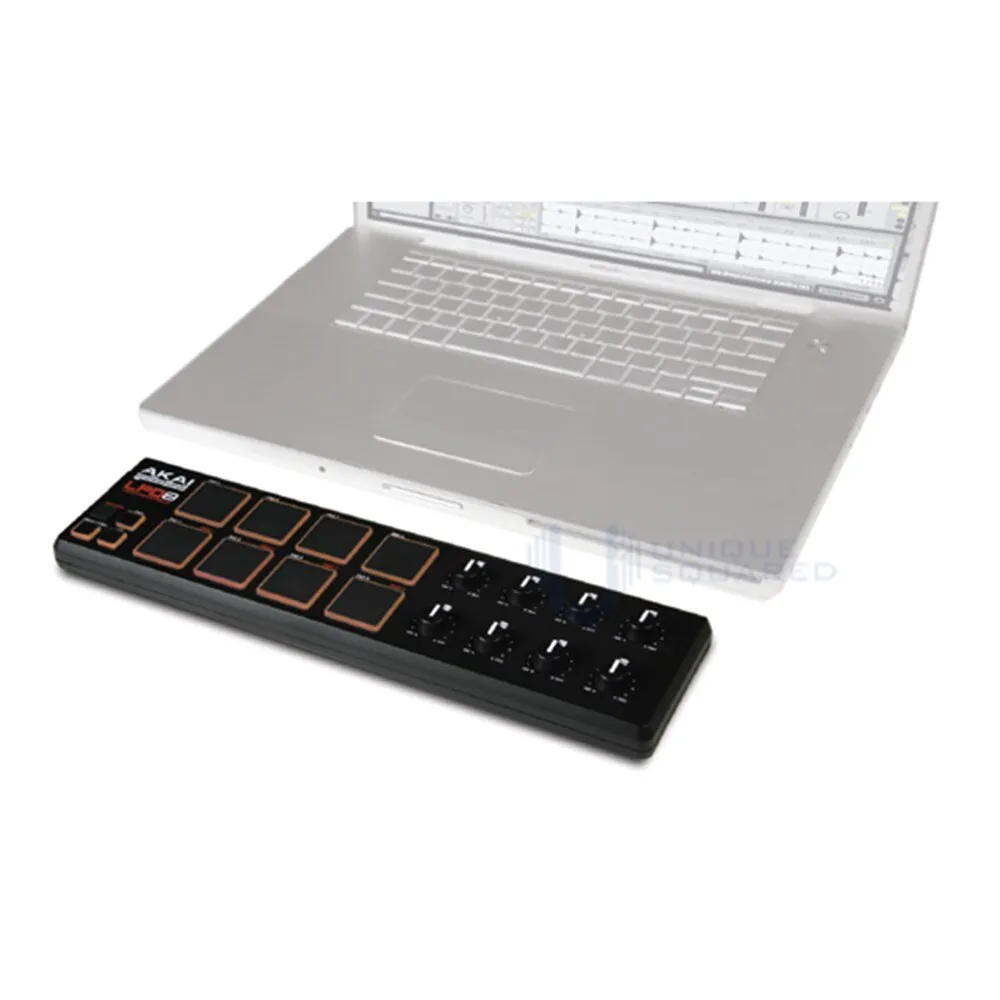 The LPD8 laptop pad controller is a USB-MIDI controller for musicians, producers, DJs and other music creators. It measures less than 13 inches across and weighs less than a pound to easily fit into a laptop case, backpack or messenger bag for extreme portability.