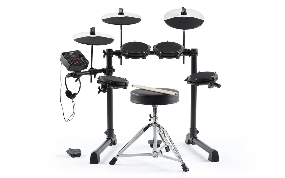 • Drum throne, sticks, headphones, and cabling included
