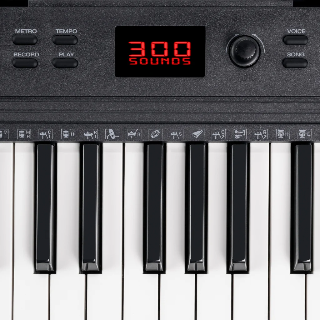 • 300 built-in sounds with the ability to layer or split two tones across the keyboard