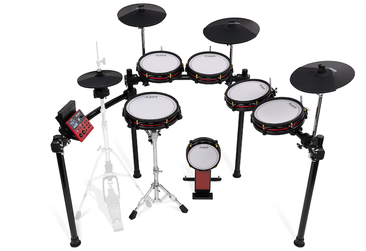 • Cymbals: (1) 14" triple-zone ride and (2) 12" dual-zone crashes