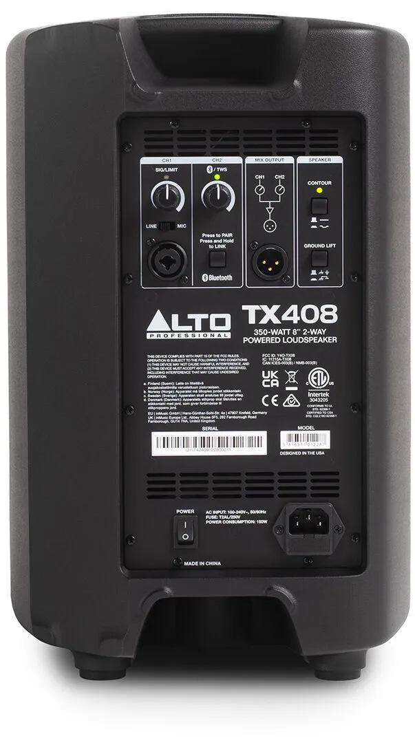 Alto TX408 8" 350 Watt 2-Way Powered Loudspeaker w/ Bluetooth