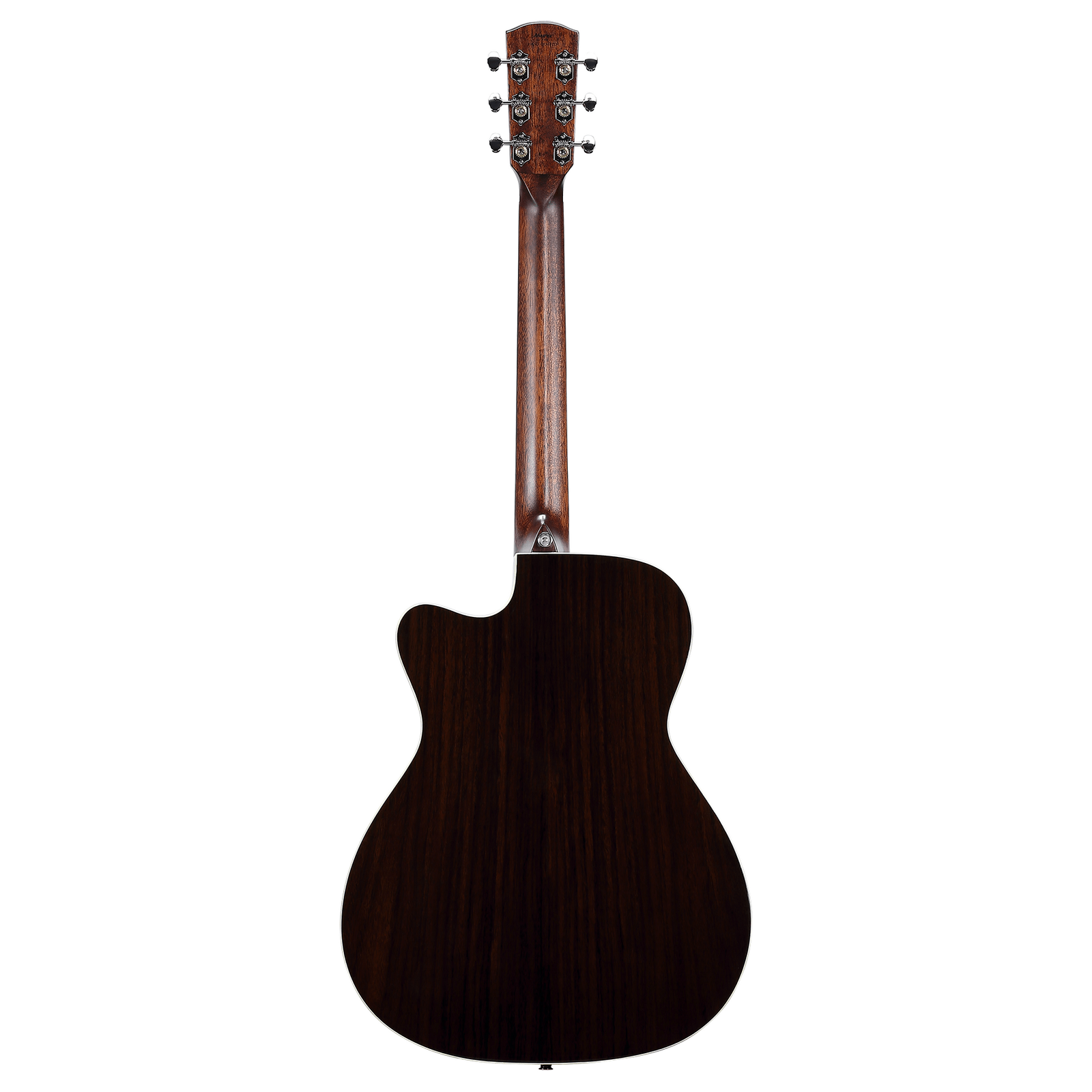 Tonally we have balanced the compression available from the smaller body size with a lighter weight X-brace design. This keeps the OM’s round notes and super-fast response but balances those features with a more open projection. No matter what music or playing style you gravitate to, this all-solid, finely dressed guitar is a true all-rounder with an impressive, eloquent voicing.