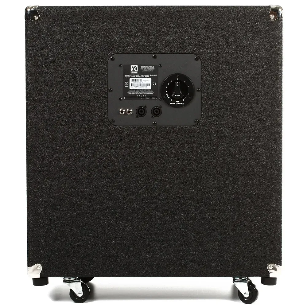 The compact Ampeg SVT-410HE 4x10-inch horn driver 500-watt speaker cabinet delivers superb full-range performance all the way up to 18 kilohertz. This powerful cabinet adds extended upper registry clarity to set ups that already feature ample low frequency performance, so your higher frequencies sound just as a good as the lower ones. Combine this speaker cab with other SVT products to create a dynamic sound system that doesn't disappoint.