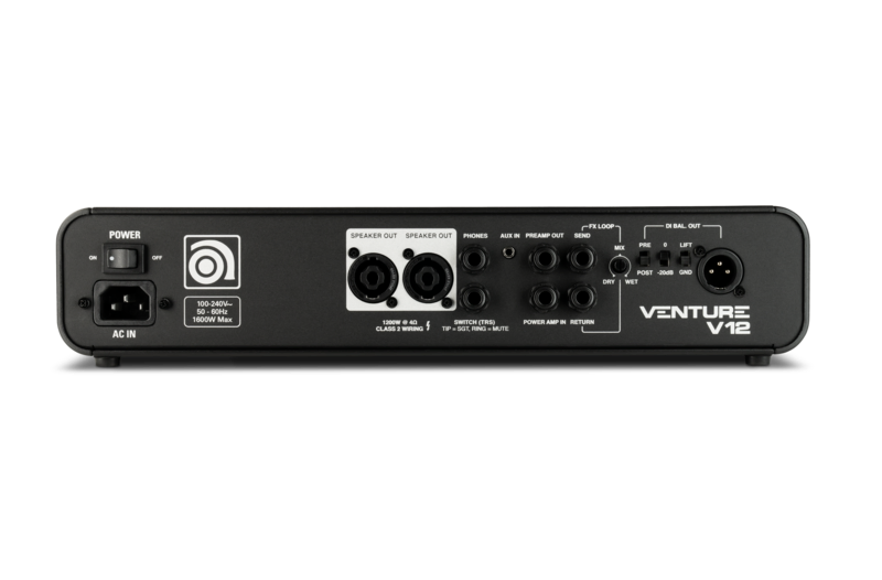 The 1200-watt Venture V12 is the largest and most powerful of the three heads in the Venture Series, yet it weighs less than nine pounds and fits into a gig bag or the optional Venture carrying bag, making it an ideal head for the travelling bassist. It’s Class D power section provides more than enough power to drive any of the Venture Series speaker cabs or practically any other cab bassists may encounter on their travels.