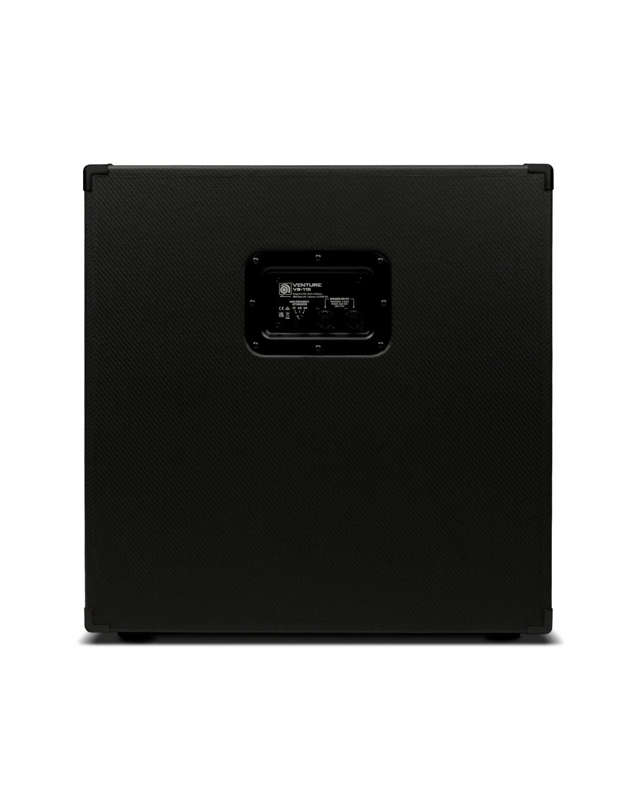 The front-ported Venture VB-115 bass cabinet handles 250 watts RMS/500 watts Program power (8Ω) yet weighs less than 34 pounds. Ruggedly constructed and covered in durable carbon fiber-style Tolex, this stylish cabinet is loaded with a 15" custom-voiced Lavoce neodymium woofer and a variable high-frequency driver. Use as a medium-format single cabinet or combined with any other Venture cabinet. Add an optional Venture padded cover for increased protection.