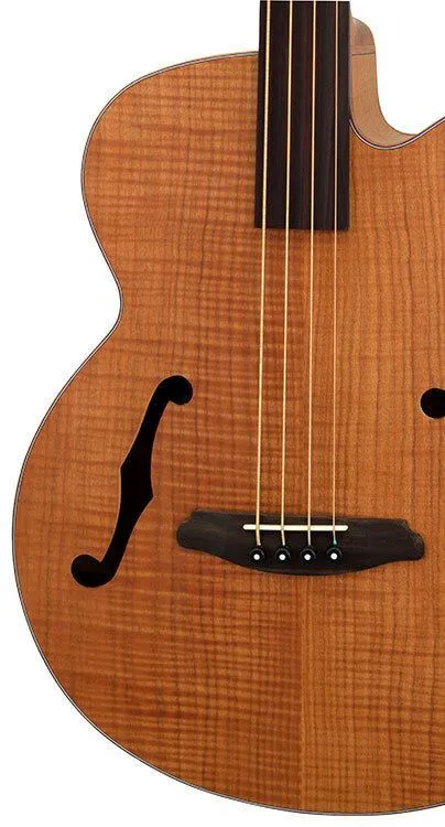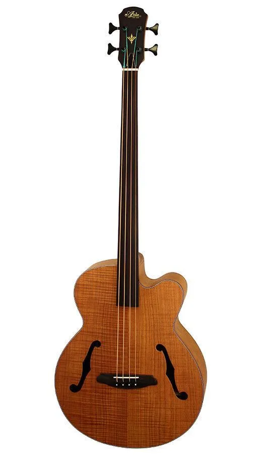 Aria FEBFLF F-Hole Acoustic-Electric Fretless Bass Guitar Natural