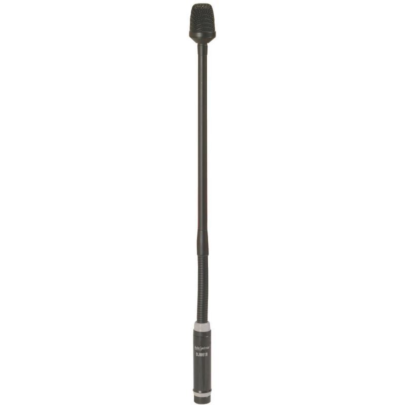 The DJM618 features a flexible gooseneck and a 3-pin XLR male connector at the base. The unidirectional pattern effectively minimizes feedback and noise from off-axis sections of the dynamic capsule. Can plug into any XLR microphone input on any DJ mixer.