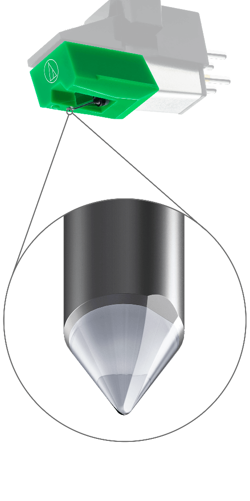 Replacement stylus for Audio-Technica AT95 cartridge.