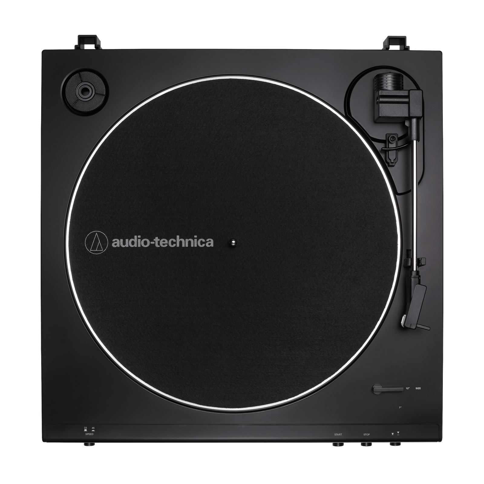 • Fully automatic belt-drive turntable operation with two speeds: 33-1/3, 45 RPM