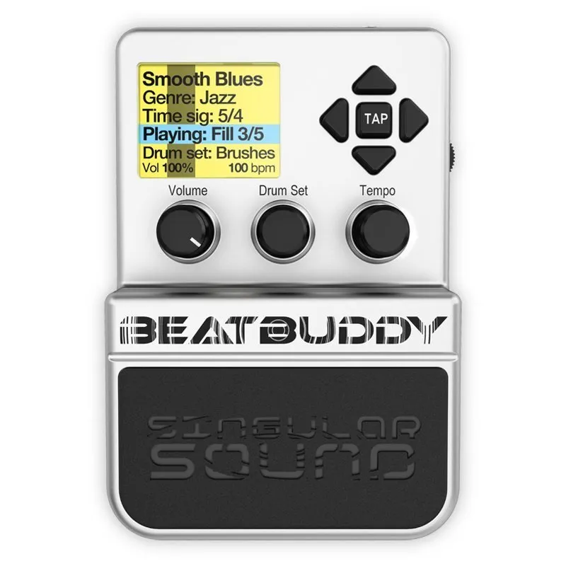 The BeatBuddy is a drum machine in a stompbox, or a drummer pedal for short. Further, we’ve meticulously recorded professional drummers and paired their samples with an algorithm that results in the best sounding drum machine you’ve ever heard.