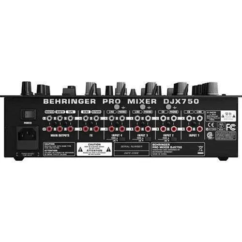Because your voice is your instrument, the DJX750 features a dedicated mic channel with all the tools to make your sound supremely distinctive. Vocal fi ne-tuning is handled by the onboard 3-band EQ, which provides up to 15 dB of boost or cut at LOW (80 Hz), MID (2.5 k), and HIGH (12 kHz) frequency centers — creating an extremely broad tonal palette. The DJX750’s stereo channels’ EQ utilize the same frequency centers with a boost of up to 12 dB and a cut of as much as -32dB. These channels are equipped to handle every conceivable input source — from line level, phono, CD and tape decks to mp3 and minidisk players, we’ve got you covered.