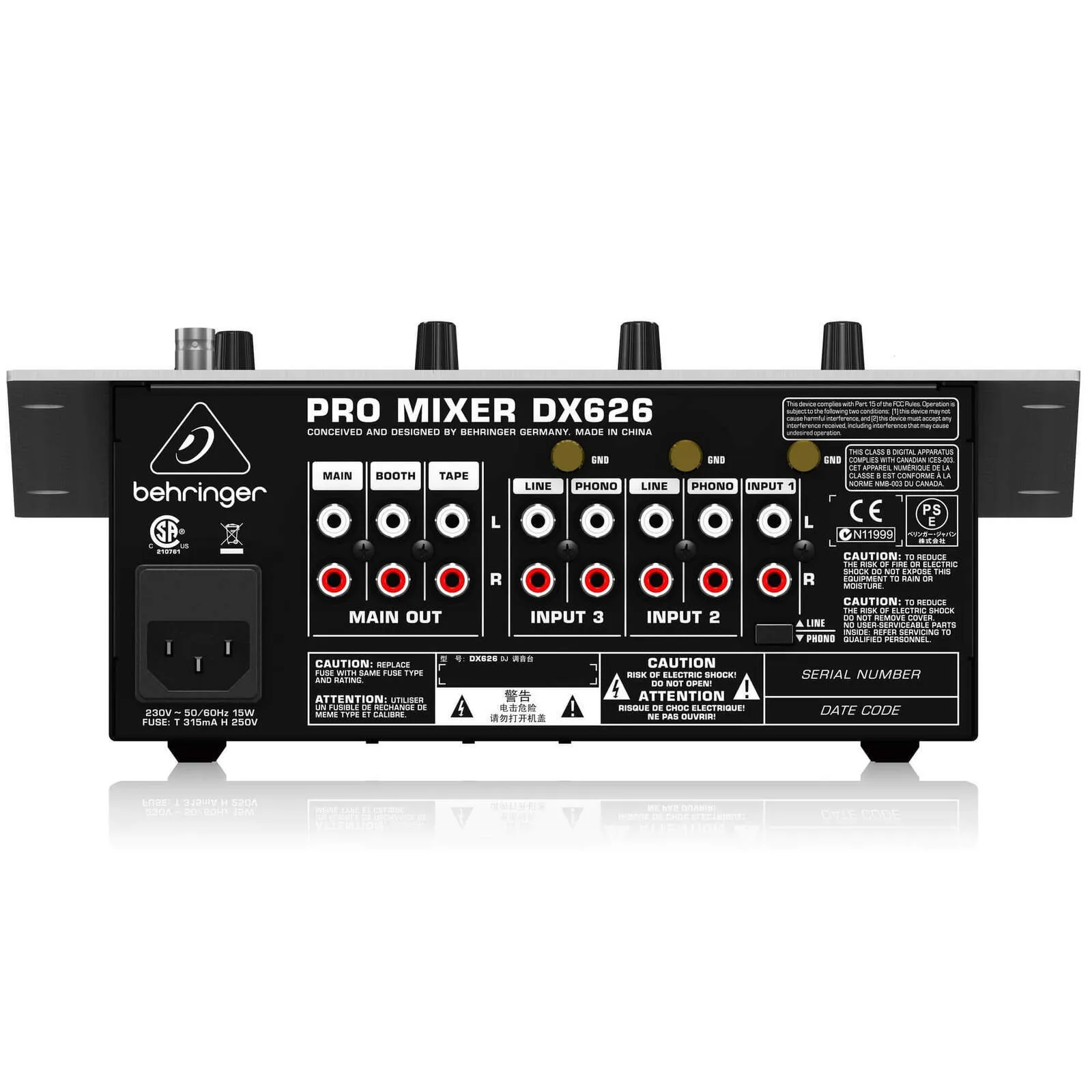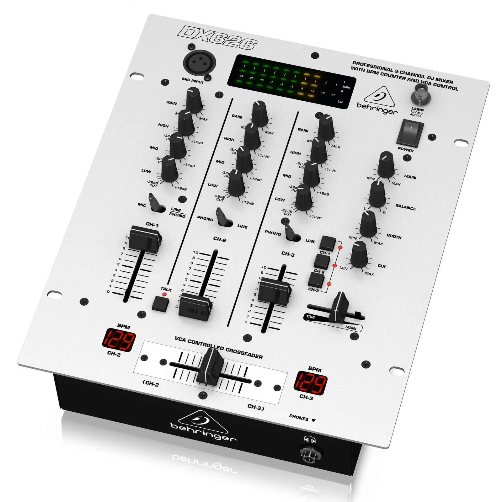 The Behringer PRO MIXER DX626 is a professional high-quality 3-channel DJ mixer with integrated Beat-Per-Minute (BPM) counter, and embodies a proven 3-channel design loved by DJs worldwide – beginners and professionals alike.