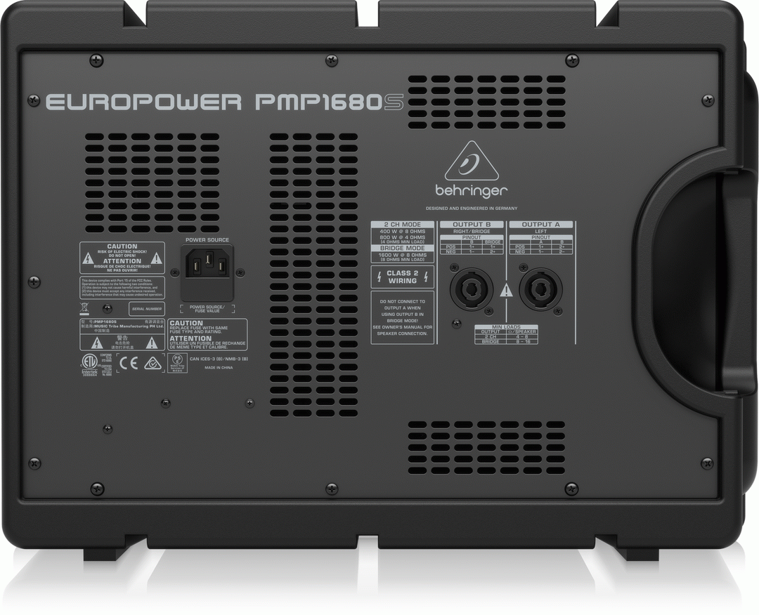 The amazing PMP1680S Powered Mixer packs tremendous power (2 x 800 Watts stereo or 1,600 Watts in Bridged mode), while maintaining an incredible power-to-weight ratio. These mixers employ high-efficiency Class-D technology and a state-of-the- art switch-mode power supply, which significantly reduces weight and heat.