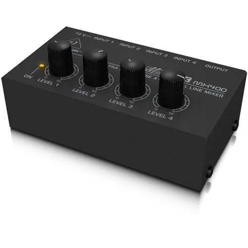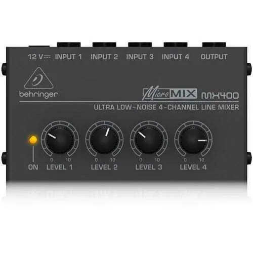 Extend the functionality of your studio space with this Behringer Micromix MX400 four-channel line mixer. The compact design makes this audio essential easy to place in your equipment lineup, providing a fast, easy way to transform stereo signals into summed mono signals. Featuring the same ultra-low noise 4580 operational amplifiers used in Behringer's bigger units, this mixer delivers excellent audio performance.