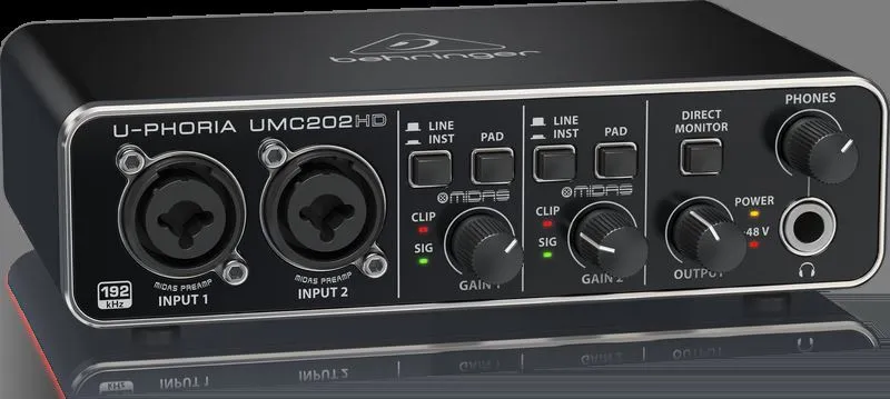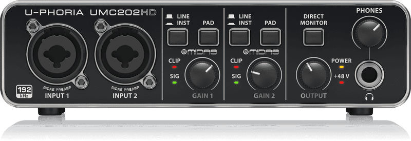 This blazingly fast USB 2.0 studio in a box will have you recording your next masterpiece in minutes with all the connectivity for microphones, guitars, bass and keyboards. Record the perfect vocal right to your computer-based DAW thanks to the 2 astonishingly pure, worldclass Midas-designed mic preamps, which include +48 Volt phantom power for condenser microphones, all going through studio-grade 24-Bit/192 kHz converters for the best possible sound quality. Whether you’re a singer-songwriter, producer on the go, or just need a rock-solid interface for running backing tracks at a gig, the ultra-dependable U-PHORIA UMC202HD will help you shine in the digital domain.
