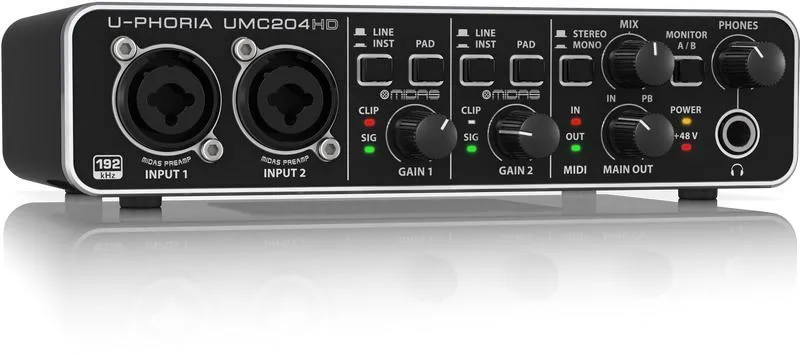 Behringer U-Phoria UMC204HD Audiophile 2x4, 24-Bit/192 kHz USB Audio/MIDI Interface