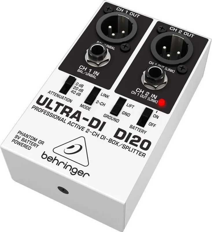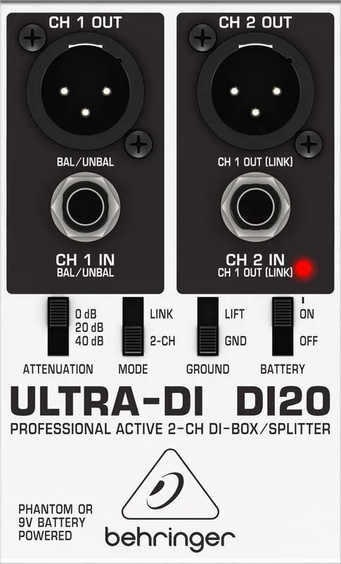 The ULTRA-DI DI20 is a one-of-a-kind DI (Direct Injection) box that can convert up to two separate, unbalanced ¼ " TRS lines into two balanced XLR outputs – or function as a signal splitter. Electric guitarists, keyboardists and bassists will love the flexibility the incredible DI20 provides both in the studio and on the stage.