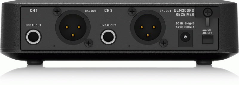 Setup couldn’t be easier, because the ULM300M mics automatically pair with the ULM300RD dual-channel receiver – without you having to lift a finger. Convenient front-panel LEDs on the receiver show your signal presence and strength, while indicators on the transmitter let you know at a glance when it's time to change batteries. Audio outputs are balanced XLR and unbalanced 1/4 TS, allowing you to connect to PA and conference room systems or high-quality instrument amplifiers.