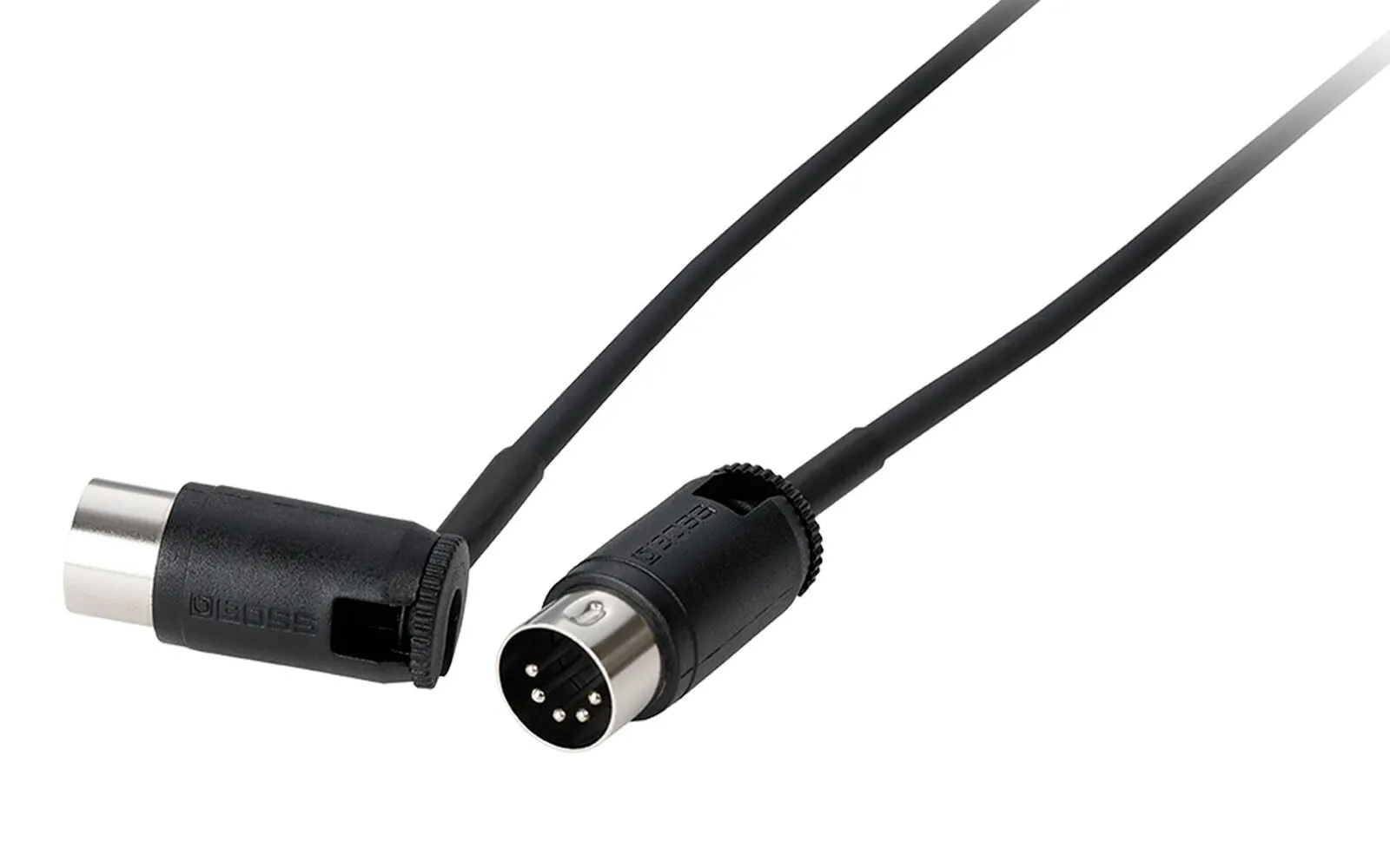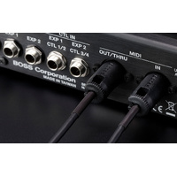 Outfitted with versatile multi-directional connectors, BOSS BMIDI-PB cables make it easy to optimize space on your pedalboard while connecting MIDI devices. Our custom three-way design lets you direct and lock each cable end as needed, either at 90-degrees or straight out like a traditional MIDI cable. The cable is both flexible and durable, with oxygen-free copper wire providing clean data transfer and maximum noise rejection. BMIDI-PB cables are perfect partners for BOSS 500 series pedals, ES-5 and ES-8 switching systems, and any other devices equipped with standard 5-pin MIDI I/O.
