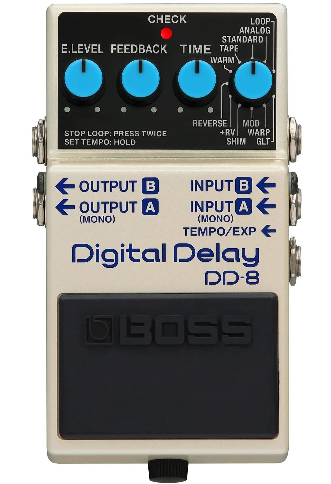 Introducing the DD-8, the most wide-ranging and feature-rich BOSS compact series delay ever. This loaded pedal delivers more of everything—more great sounds, more delay time, more control options, and more connectivity. And it does it all in a standard BOSS pedal that slides easily into any mono or stereo setup. Eleven modes provide delay colors from basic to exotic, plus a looper with unlimited overdub capability and external control support. For maximum versatility in a minimum amount of space, there’s no better delay stomp than the DD-8.