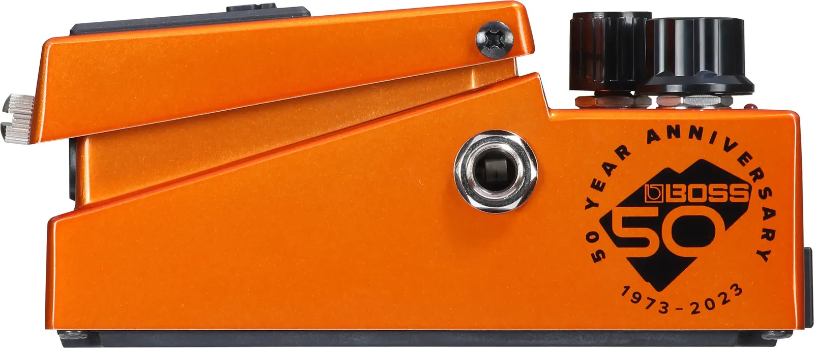 Marking the celebration of BOSS’s 50th anniversary, the limited-edition DS-1-B50A Distortion sports a metallic finish; silver thumb screw; gold-capped knobs; and commemorative 50-year anniversary emblem. Appearing in exclusive livery with a dedicated 4-digit serial number and bespoke packaging, the DS-1-B50A features the same beloved circuitry as the standard production DS-1 Distortion. This collectible version is available in strictly limited numbers of no more than 7,000 units worldwide.