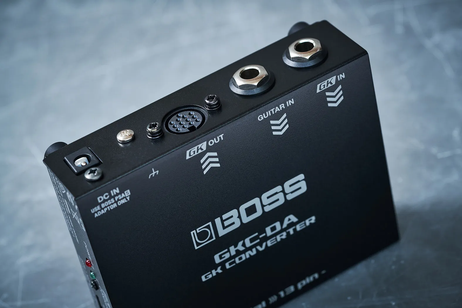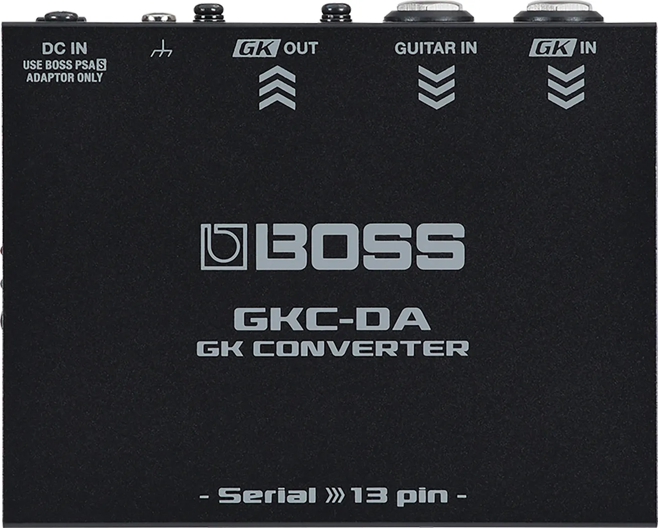 The latest BOSS guitar synthesizer products feature the Serial GK digital interface, a newly developed connection method that delivers evolved performance over the analog 13-pin GK interface used in earlier BOSS and Roland guitar synth and modeling products. The GKC-DA GK Converter allows you to drive a 13-pin GK device such as the BOSS SY-1000 or GP-10 using the Serial GK output on a GK-5 or GK-5B Divided Pickup or the GM-800 Guitar Synthesizer.