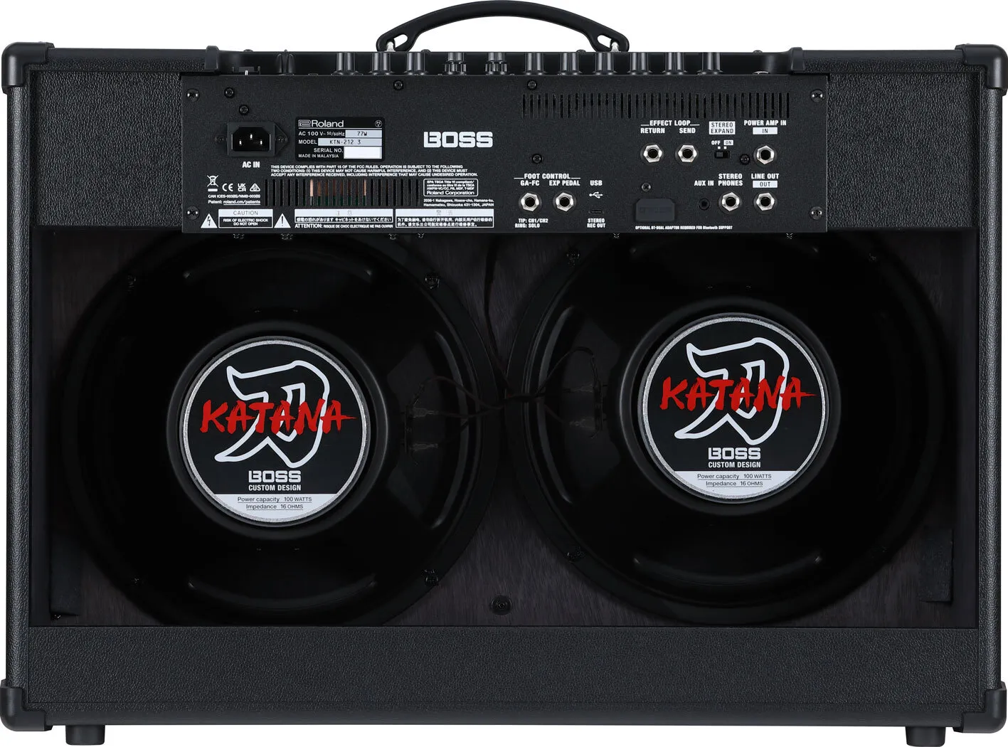 The Katana-100/212 Gen 3 model projects rich, venue-filling sound with 100 watts of Class AB power and two custom 12-inch speakers.