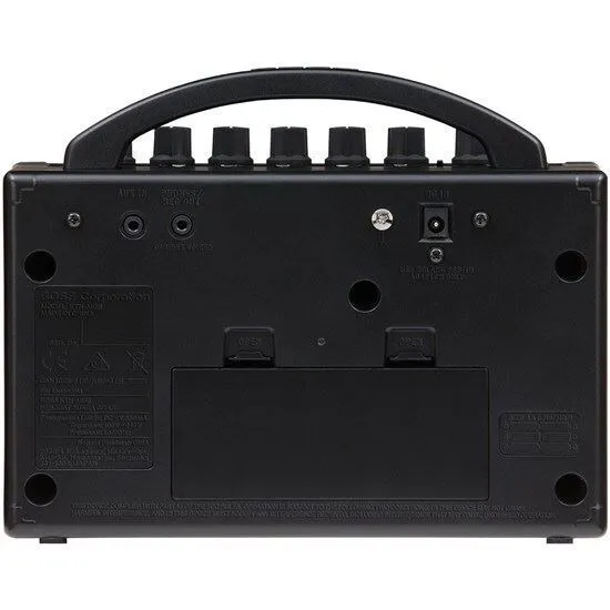 Unlike typical small, battery-powered guitar amps that offer so-so sound quality, the Katana-Mini produces big, full tone that inspires you to plug in and play for hours at a time. BOSS’s comprehensive design approach includes a custom speaker, advanced hardware, refined circuitry, and special component selection, which all work together to produce maximum sound quality in a minimum footprint. The amp also incorporates BOSS’s decades of research in energy efficient design, providing class-defying power and punch from only six AA-size batteries.