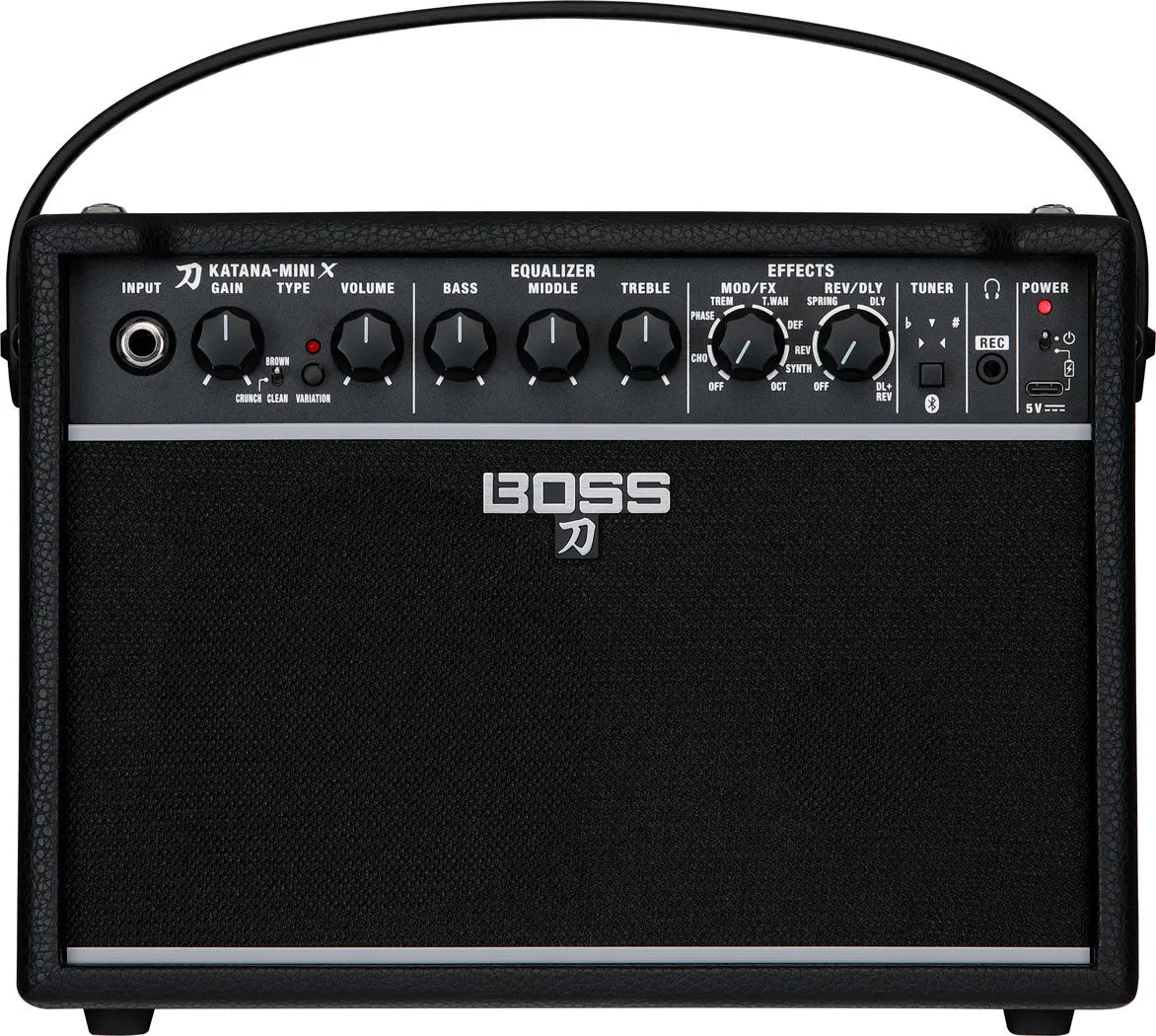 Katana-Mini X delivers acclaimed Katana tones in a fun and inspiring amp for daily practice and jamming. Evolving on the features of the popular Katana-Mini, it offers six versatile analog sound options and two simultaneous effects, housed in a robust wood cabinet for a bigger and fuller guitar experience. Katana-Mini X also provides many enhancements to energize your playing sessions, including an onboard tuner, front-facing panel controls, an internal rechargeable battery, and onboard Bluetooth® for streaming music from your smartphone.