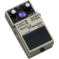 Rotary speaker cabinets sound amazing, but their size and weight make them impractical for anyone but the most dedicated vintage enthusiasts. Powered by the latest BOSS advancements, the RT-2 Rotary Ensemble distills this expressive spatial effect into a footprint that’s easy to integrate into every setup. This powerhouse pedal authentically recreates the complex sonic magic of its inspiration, supported by three sound modes, deep tonal shaping, and advanced operation with the onboard pedal switch and external control.