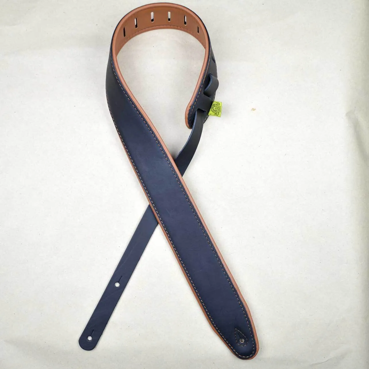 Colonial Leather 2.5″ Padded Upholstery Leather Guitar Strap - Black And Tan