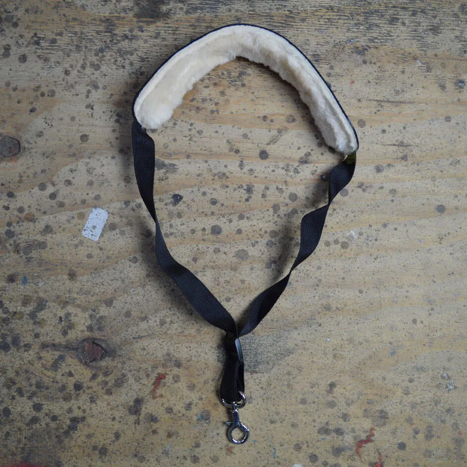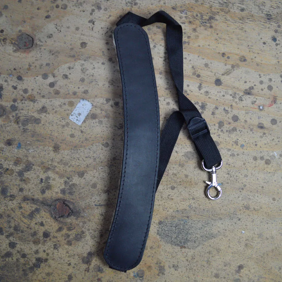 Black Leather Saxophone Strap with Lambs Wool Pad.