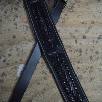 Colonial Leather Black Soft Leather Guitar Strap with Black Plait