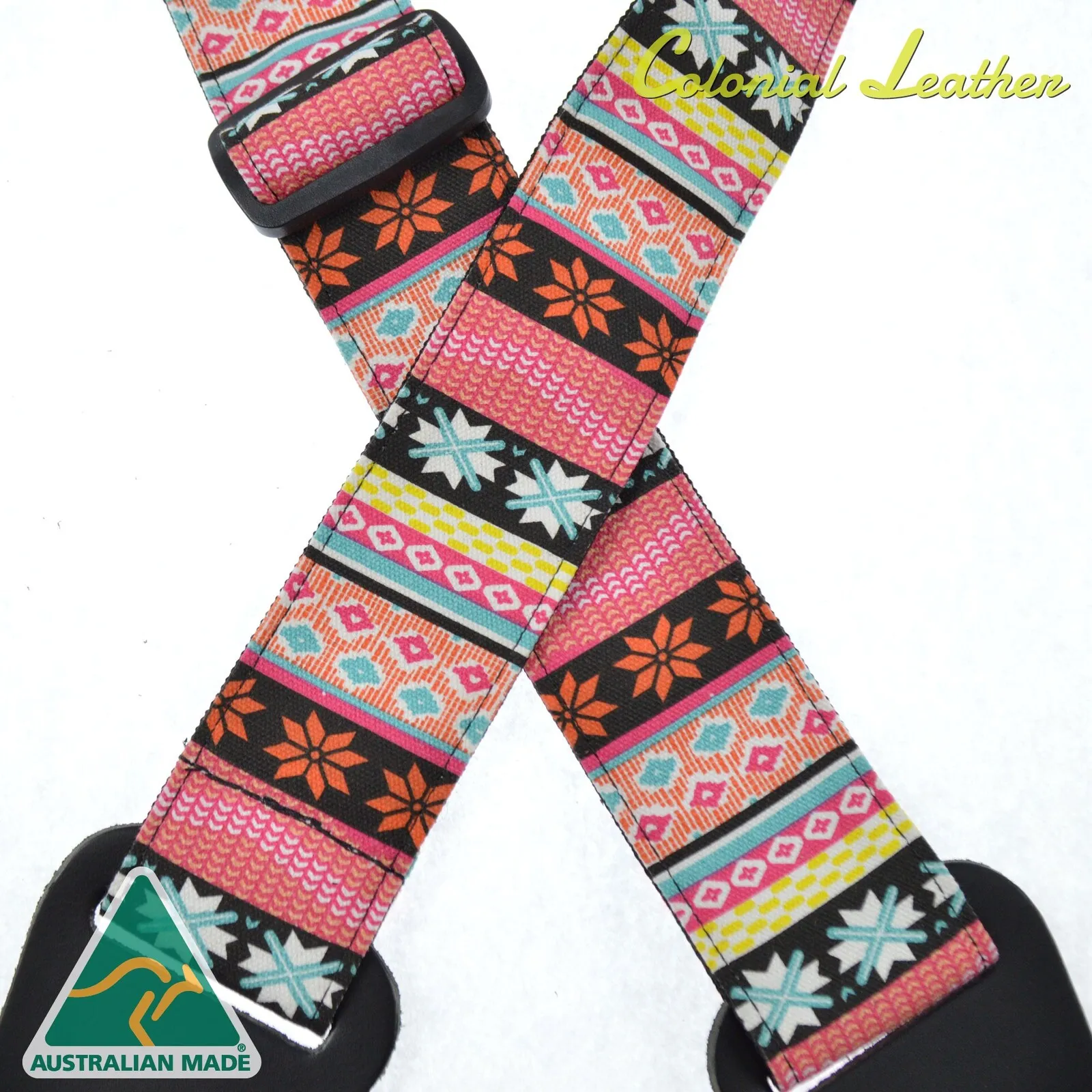 Fabric sewn onto 50mm webbing.