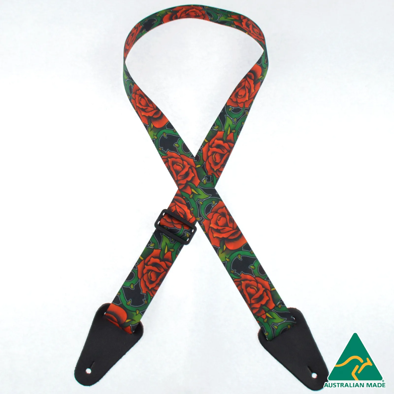 Colonial Leather Direct Print Webbing Strap - Red Rose