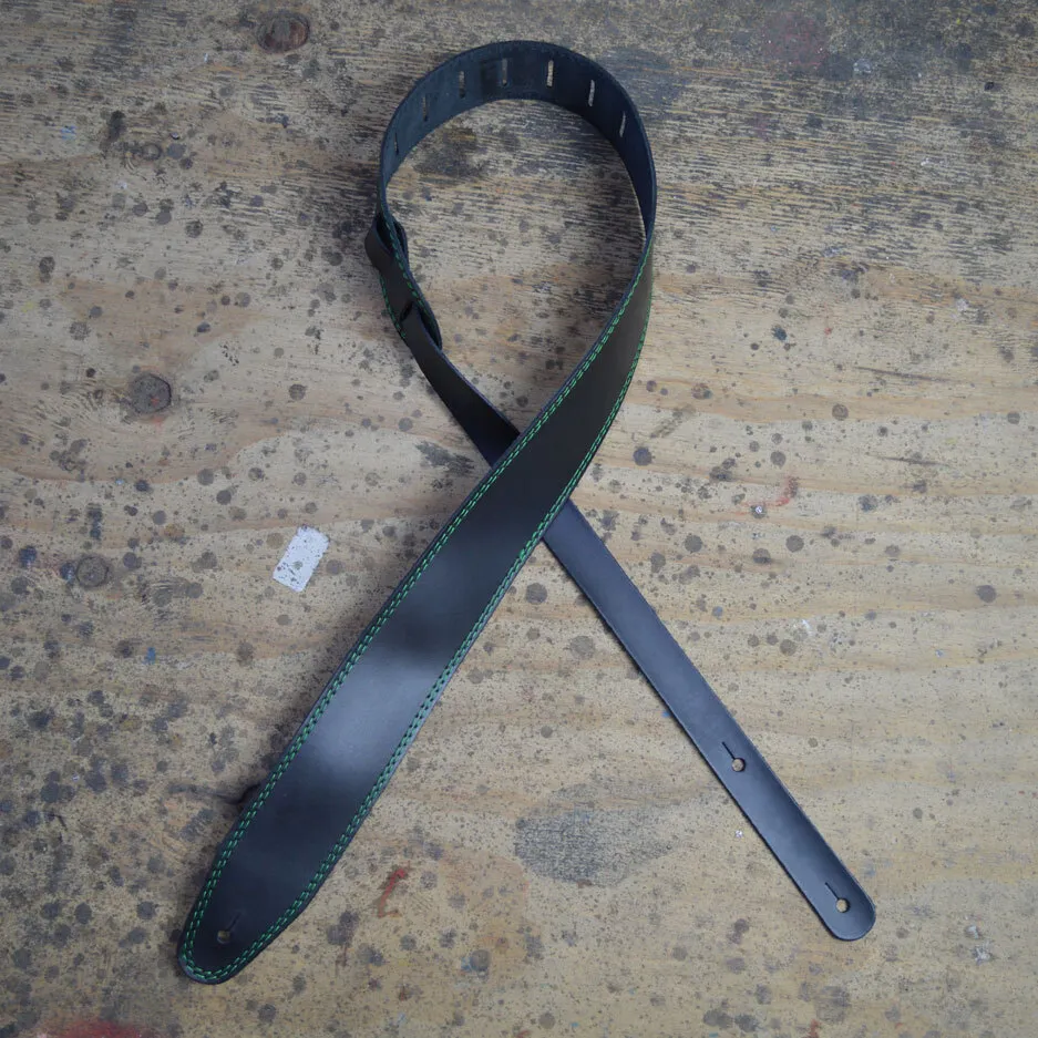 Colonial Leather Green Stitched Black 2.5″ Leather Guitar Strap
