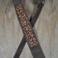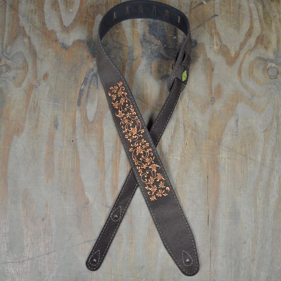 Colonial Leather Leaves Embroidered Brown Suede Guitar Strap