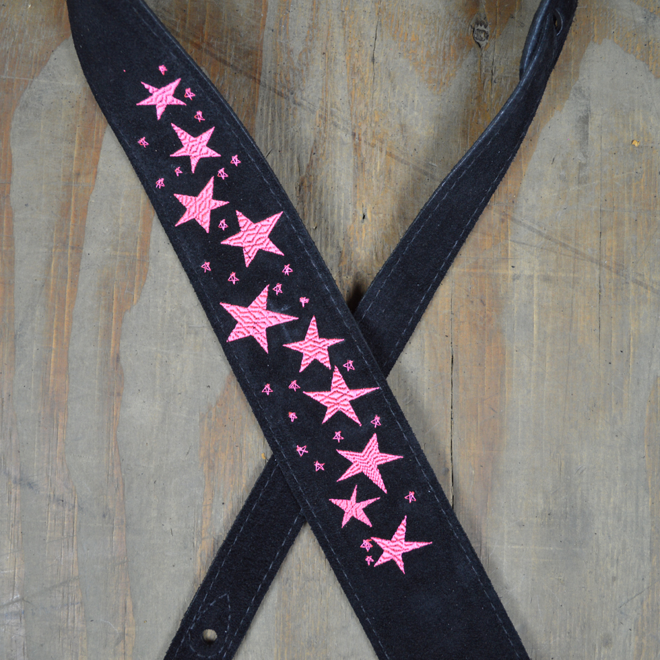 Colonial Leather Pink Stars Embroidered Suede Guitar Strap