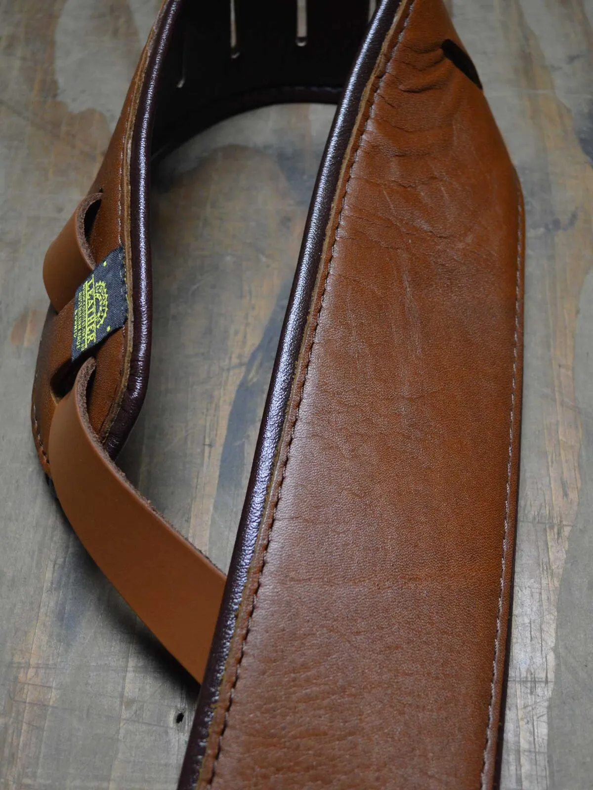 Colonial Leather SOUP30-TNBR 3" Upholstery Backed Leather Guitar Strap - Tan And Brown