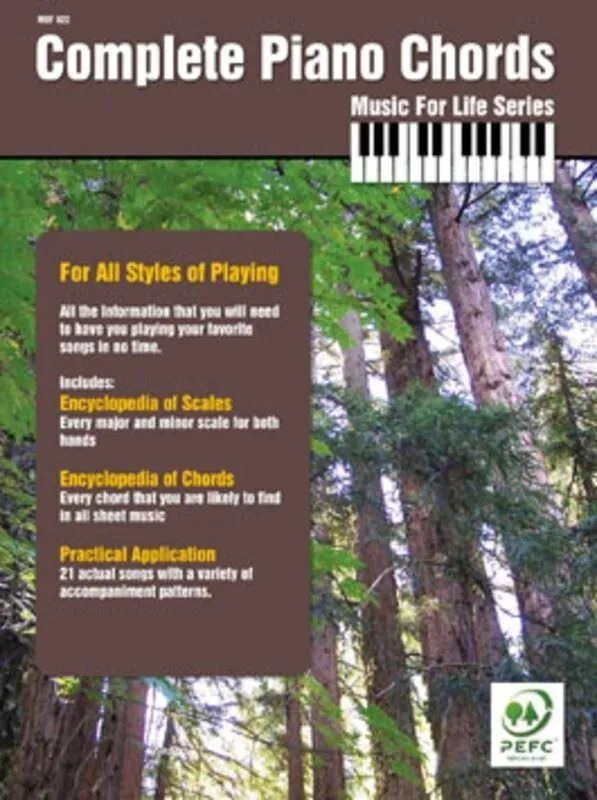 This encyclopedia of scales (all major & minor scales for both hands); encyclopedia of chords (every chord you're likely to find in any sheet music); and practical applications of over 21 songs with a variety of accompaniment patterns, has all the information you need to start playing your favourite songs. 55 Pages.