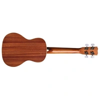 The 15 series is a perfect place to start on ukulele. All mahogany construction provides a full, rich sound and appointments like an abalone rosette and cream ABS body and fingerboard binding set these instruments apart from other models in its price range. Additional features include a sleek satin finish, silver tuners with pearl buttons, and premium Aquila strings.