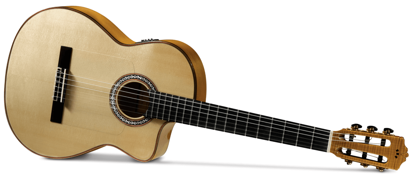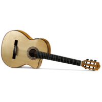 Designed for aspiring classical guitar players, the Protégé Series C1M from Cordoba is a full-size, nylon-string classical guitar with a natural, matte polyurethane finish. It utilizes a traditional, classical build with fan bracing, featuring a spruce top with mahogany back and sides. Aesthetics such as a traditional rosette and black ABS binding are also incorporated.