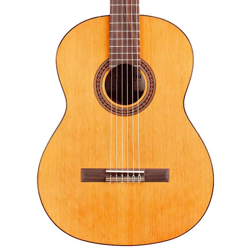 The C5 is one of Córdoba's flagship models and a top seller worldwide. Perfect as a first nylon-string guitar, this lightweight model is built with a solid Canadian cedar top and mahogany back and sides to produce a warm, well-rounded tone with beautiful sustain. Handmade in the traditional Spanish style, the C5's carved headstock, hand-inlaid wood rosette, Indian rosewood binding, Savarez strings, and glossy PU finish result in a guitar that truly stands out from all other entry-level options. A lightweight adjustable truss rod is built into the neck for stability.