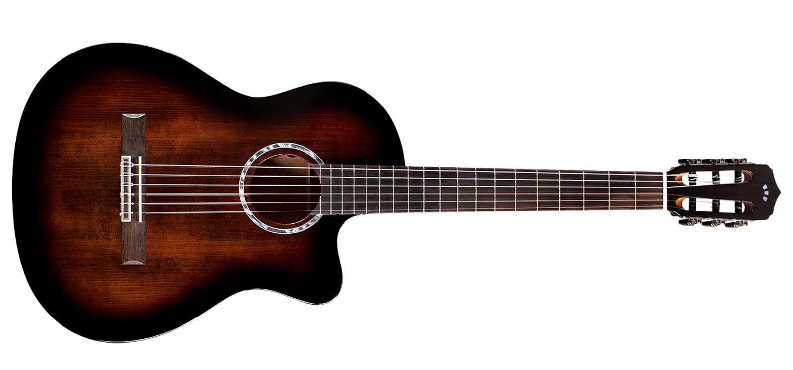 Córdoba’s entry into the fusion line! The perfect choice to transition from a steel string to a nylon guitar, the Córdoba Fusion 5 features a solid spruce top, mahogany back and sides, a full body with cutaway for extended playing range, side dot fret position markers, and a pearl decal rosette and arches. The fusion neck with a 16” radius fretboard and smaller, 1 7/8” (48mm) nut width provides a playing experience very close to that of a steel string guitar. This familiarity offers an easy transition for steel string players and players with smaller hands to the world of nylon string guitar. Added side dot markers also depart from traditional nylon string guitar construction, providing players reference for their position on the fretboard. Equipped with the Fishman Presys VT Pickup System, the Fusion 5 is ready to plug in and play. Available in Gloss Natural and Jet-Black finish with mahogany back and sides and Gloss Sonata Burst with elegant flamed mahogany back and sides.